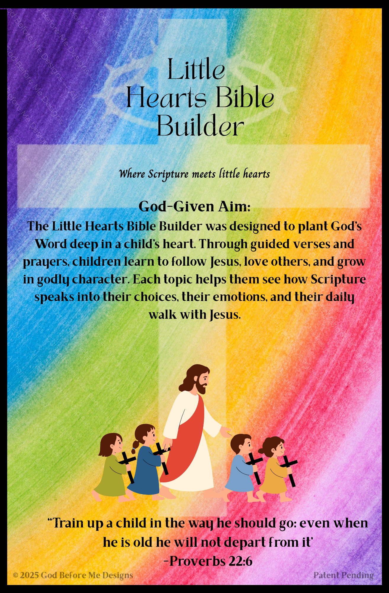 Designed for families who desire a home centered on faith, the Little Hearts Bible Builder provides Scripture-filled prompts that spark conversation, reflection, and connection. Each card helps children learn God’s Word in a way that is clear, practical, and heartfelt. From building character to nurturing spiritual habits, this tool strengthens the foundation of your home through biblical truth.